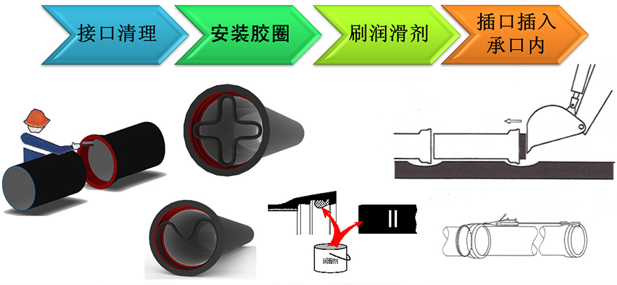 T型接口的安裝十分快捷。安裝速度(一個(gè)工作面、機(jī)械安裝)DN600每天安裝36~37支,DN1200每天安裝24~25支,DN1600每天安裝14~16支。