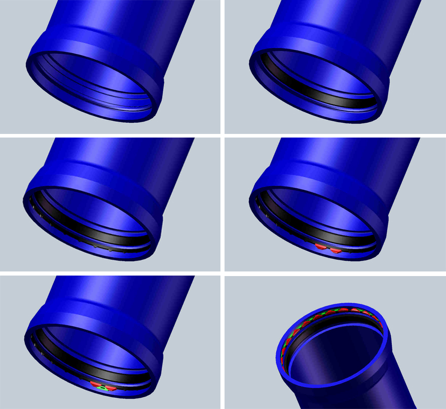 K型接口是通過緊固連接螺栓,使壓蘭擠壓密封膠圈,使膠圈與密封面產(chǎn)生接觸壓力來實(shí)現(xiàn)密封。 在檢修和維護(hù)方面也很方便:可通過緊固螺栓或拆卸壓蘭更換膠圈的辦法來解決管道接口泄漏問題,大口徑管安裝力小,可靠性較好,但是受安裝者的技能影響較大。