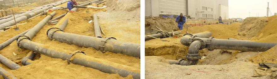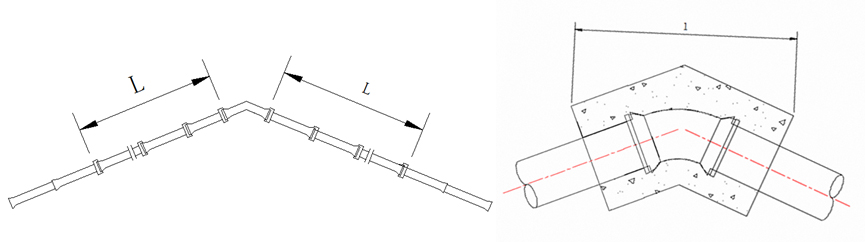 工程管線遇到彎頭不能打支墩必須采用自錨式接口來限制軸向位移!